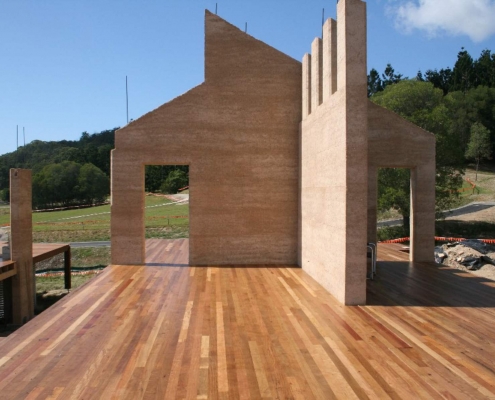 A 3 pavilion residence that houses the garage and store room, the bedroom, bathroom and laundry zone are joined by a breezeway, the living, dining and kitchen areas are in the north pavilion. One of my favourite eco features of this house is that I achieved sunlight into the south facing room by leaving holes in a blade rammed earth wall that allowed light and warmth right into the TV room in the back of the house. Stainless steel tanks are used for the main thermal mass component which doubles as a day bed proving very popular with the many visitors. I’ve since become a huge fan of the daybed incorporating it into my own home and others. Perfect for the after lunch nap with winter sun shining on it.